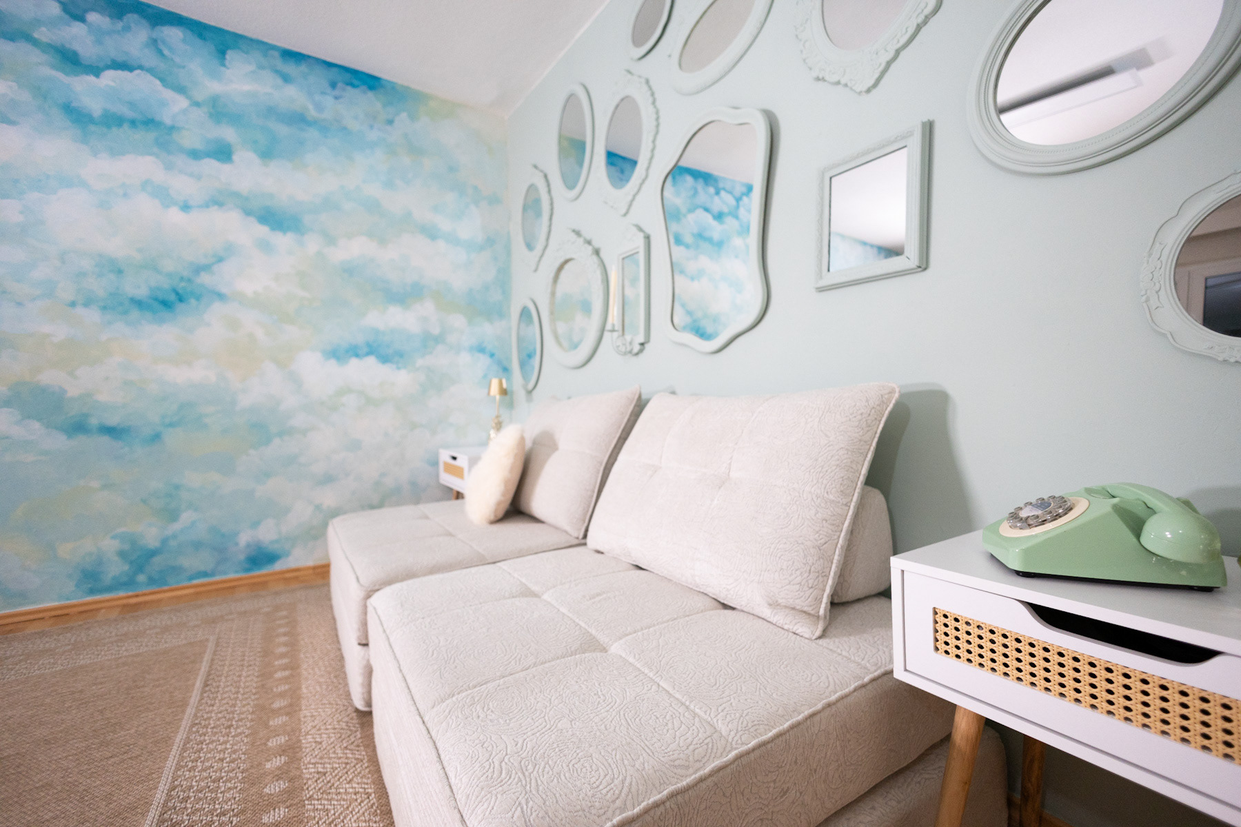 Nach mehr als zehn Jahren Shabby Chic mit mehrfach umgestrichenen Möbeln, dunklen Wänden und viel Gold war mir mal nach etwas anderem zumute. Studio Nummer 4 ist hell, modern und freundlich eingerichtet. Mit viel Weiß, Holzfußboden, Rattan und vielen Pflanzen.
